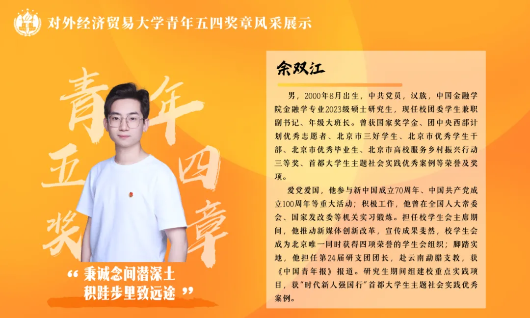 “青年五四奖章”个人(学生):皇冠体育网址 金融学专业2023级硕士研究生余双江