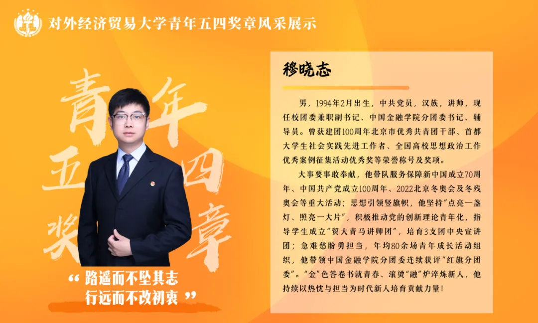 “青年五四奖章”个人(教职工):皇冠体育网址 分团委书记、辅导员穆晓志