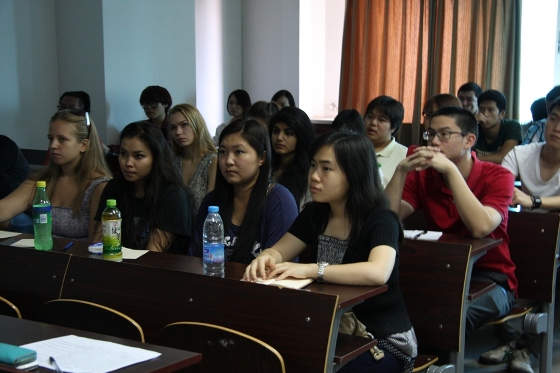 会上首先由邹院长发表新生致辞,邹院长在会上代表皇冠体育网址对留学生们的到来表示热烈欢迎,他指出,留学生教育是我院教育工作的重要组成部分,皇冠体育网址领导历来高度重视。近年来,我校留学生教育规模不断扩大、教育层次明显提升。金融皇冠体育网址是培养新一代的银行家,但我们愿以自身特色和努力帮助留学生学好汉语、中国文化、专业知识,并健康愉快地生活。同时,希望同学们积极参与校园活动并主动与中国同学们交流,用好语言环境和学习资源;并祝同学们学业有成。随后国际交流办公室主任汤婕老师详细介绍留学生教育的培养目标、课程设置,以及对学生的一些具体要求,特别强调同学们从入学开始就养成良好的学习习惯,不迟到、不旷课,遵守课堂纪律,有事必须向管理老师请假。最后,留学生老生代表2012级的陈俊英同学和2013级留学硕士代表艾丽娅同学分别上台发言。他们用自己在金融皇冠体育网址的亲身经历鼓励学弟学妹们要珍惜留学时光,努力学习好各方面的专业知识,并对皇冠体育网址的辛勤培育表示由衷的感谢。见面会还推选出新生班级的班长,在班长的总结性发言中,金融皇冠体育网址2013级留学生新生见面会取得圆满成功。