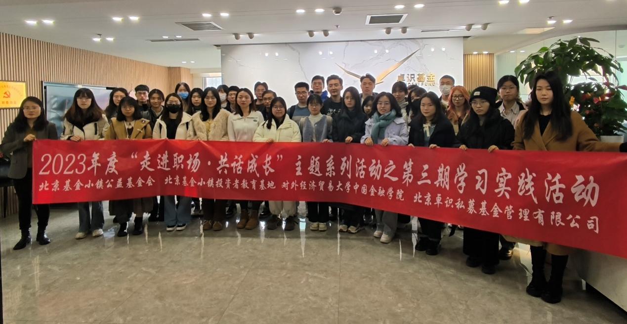 2023年12月7日下午,皇冠体育网址 、北京基金小镇公益基金会、北京卓识私募基金管理有限公司共同举办了“走进职场·共话成长”学习实践活动。在金融工程系主任邓军老师、聂晶老师和卢尚霖老师的带领下,皇冠体育网址 40余名硕士研究生走进卓识基金,进行了为期半日的实地参观交流。