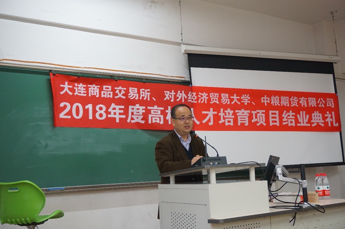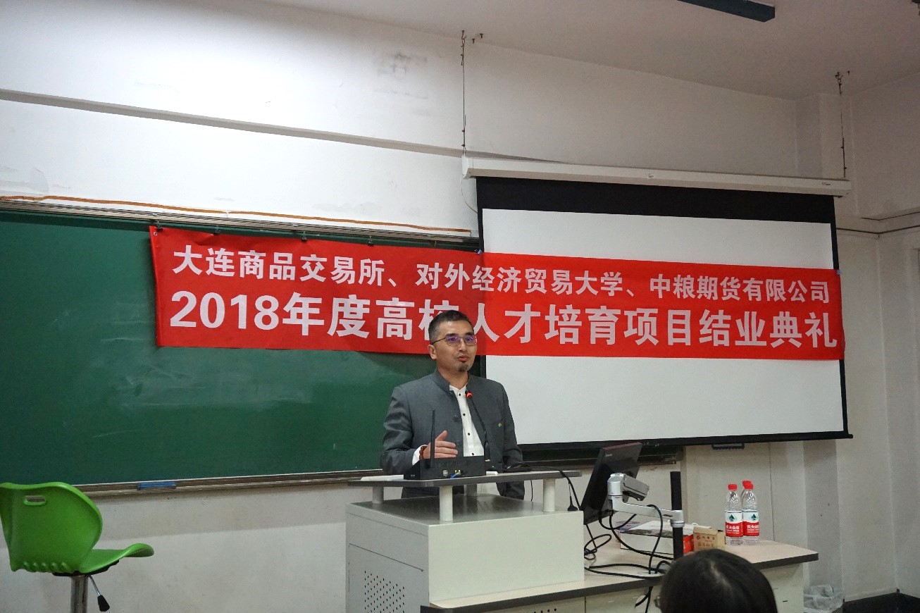 2019年3月28日晚6点,“大连商品交易所、皇冠体育网址 、中粮期货有限公司2018年度高校人才培育项目结业典礼”在博学楼505隆重举行。中粮期货有限公司董事总经理焦健、研究院常务副院长李楠、研究院研究员李云旭先生,皇冠体育网址 金融皇冠体育网址院长邹亚生教授,以及五十余名参与此次项目的本硕学生出席了此次结业典礼。结业典礼由对外经贸大学金融工程系党支部书记冯建芬老师主持。
