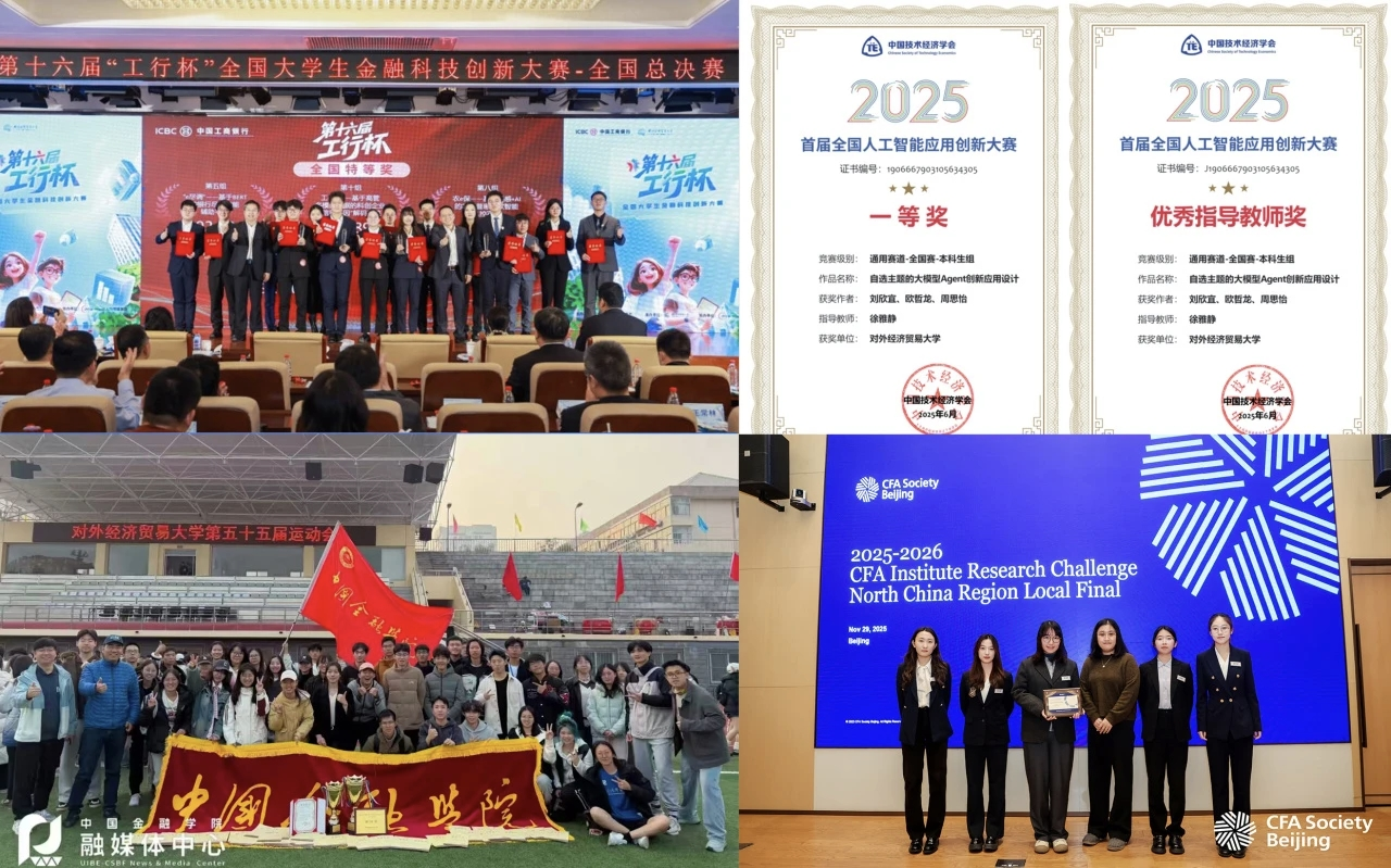 2025年学生在各类社会实践和比赛竞赛中表现亮眼,总计获得各级各类奖项3300余项,其中省部级及以上203项,包括美国大学生数学建模竞赛M奖等国际级奖项11项;“工行杯”全国大学生金融科技创新大赛全国特等奖、全国英语演讲比赛总决赛一等奖、首届全国人工智能应用创新大赛全国赛一等奖、第四届中国研究生金融科技创新大赛等国家级奖项58项;“挑战杯”首都大学生课外学术科技作品竞赛一等奖、北京市大学生工程实践与创新能力大赛一等奖等省部级奖项136项;3名学生获学校“十大杰出学生”,学生文体氛围拼搏向上,全年取得贸大戏剧节等3项大型美育活动一等奖及体育类各系列赛8项冠军的优异成绩。