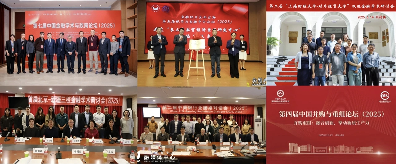 2025 年,学院共举办大型学术会议 5 场、 SBF 论坛 24 场次、经济金融名家讲坛 12场次。系列论坛中的第五届银行与金融中介论坛在宁波举办,首届 “北京 - 新疆三校金融学术研讨会(2025)” 采取两地三校分会场线上线下联动模式举办。除大型学术会议外,学院开设 “中美银行业圆桌对话” 等中小型双边论坛,并与上海财经大学金融学院开展双边学术研讨。此外,学院非实体研究机构举办 “第四届并购与重组论坛” 专项学术交流活动,形成多层次、多模式、广参与的学术会议生态体系。