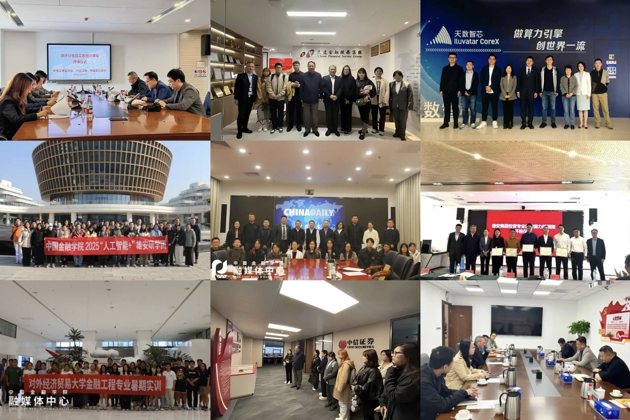 2025 年,学院深入推进产教融合,携手雄安集团、京东集团、中国证券业协会、兴业证券、中国财务公司协会、中粮期货等行业龙头与权威机构,在多个领域落地一批合作项目:与雄安集团联合举办投资专业履职能力培训班,创新“学术导师+行业专家”双师育人机制;与中国证券业协会、兴业证券共建“场外衍生品实务研讨”课程,打造“学术教学—行业实践—风险合规”三位一体培养体系;与京东集团磋商共建数字经济专业硕士项目,深化产教融合模式;联合中国财务公司协会设立研究中心,共建行业智库与实践基地;与中粮期货研究所专家共建校企融合教学团队,培养理论和实践兼备的衍生品人才。组织师生走进天数智芯、中信证券、天逸金融等领军企业,开展“人工智能+”主题研学,推动“教育链、人才链、产业链、创新链”四链深度融合。