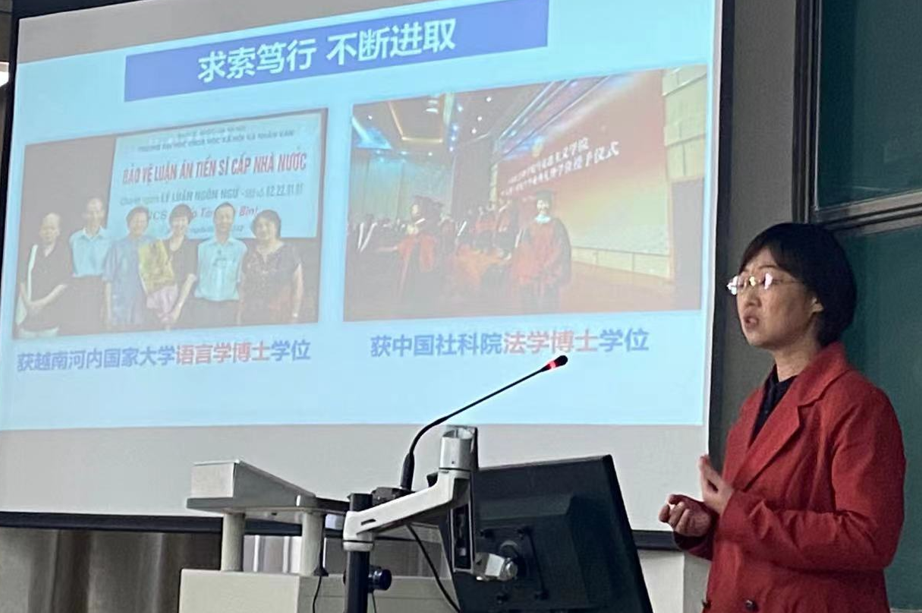2018年北京市师德榜样、外语皇冠体育网址聂槟教授是我校外语皇冠体育网址留校任教教师,自1991年以来,在越南语专业领域深耕挖掘,从课堂讲授、教材编写等实处入手,求索笃行,不断进取。为提高自身专业素质,聂槟先后攻读了两个专业的博士学位,参与《习近平谈治国理政》越南文版译审工作,真正实现“小语种,大作为”。