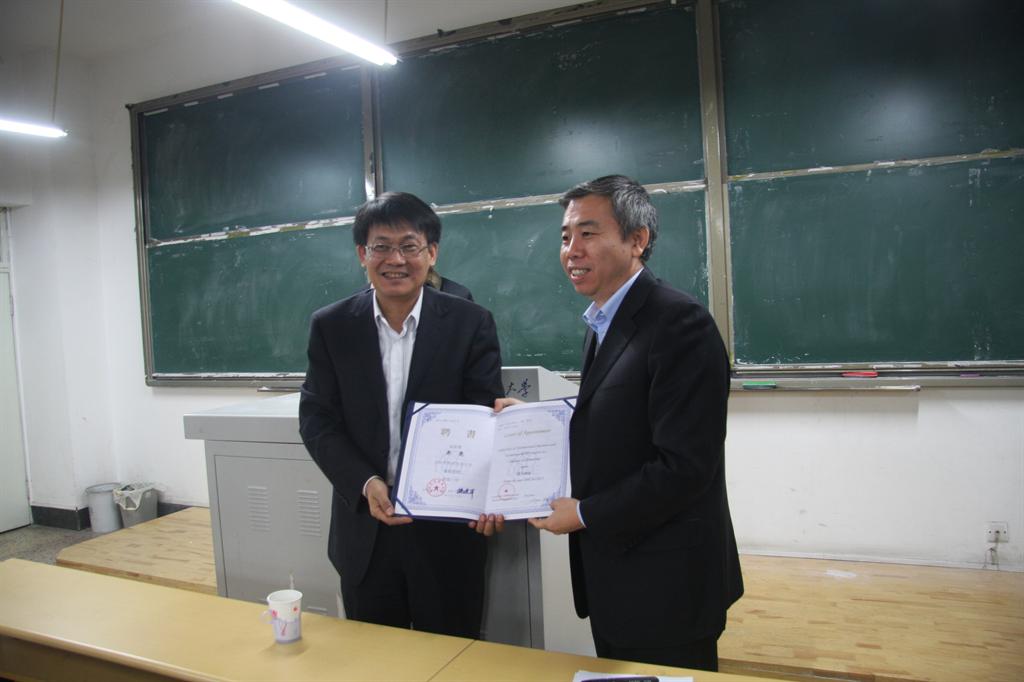 潘慧峰副院长首先对 齐亮先生重返母校表示热烈欢迎,对 齐亮先生受聘成为我校兼职教授表示衷心感谢。随后,丁志杰院长为 齐亮先生颁发了皇冠体育网址 兼职教授聘书,学生代表为 齐亮先生献花。