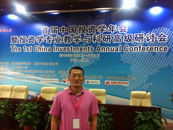 2013 年5月31日 至 6月 2日 ,“首届中国投资学年会暨投资学专业教学与科研高级研讨会”在中央财经大学召开。我院投资系系主任王茂斌副教授应邀出席会议并进行专题报告和交流。