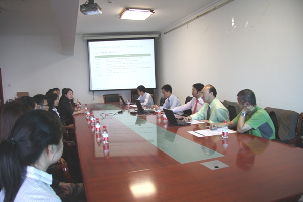 2012 年5月21日 下午13:30,埃森哲风险管理挑战杯竞赛北京赛区决赛在我校博学楼925开始举行,金融皇冠体育网址张海云教授应邀加入评审团。进入北京赛区决赛的4个团队分别为代表我校的Forerunner队(周杰、殷琳、黎操)和Sunflower队(许争、戚新、周茜)、代表中央财经大学的NOVA队、代表北京师范大学的Blossom队。赛事全程使用英语,包括演讲与问答环节。Forerunner队凭借对系统性风险(Systemic Risk)的深入理解、丰富的量化分析模型、精致的PowerPoint演示文稿、流利清晰的英语表达,以及问答环节的出色表现,最终在4个团队中力拔头筹,获得北京赛区冠军,并成功晋级大中华区总决赛。在随后的几天里,Forerunner队进一步优化研究报告细节,积极备战大中华区总决赛。