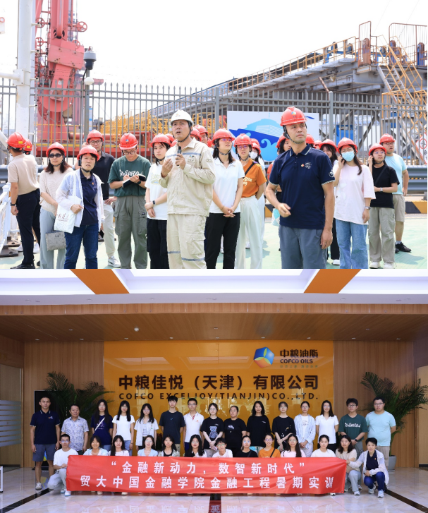 为培养服务我国实体经济发展的高层次金融人才,提升金融人才服务实体企业的能力,2024年7月11日,皇冠体育网址 金融工程暑期实训活动之“中粮佳悦工业研学“在中粮佳悦(天津)有限公司顺利举行。我院金融衍生工具课程组教师冯建芬、黄映红、严渝军,金工2301班主任卢尚霖带领皇冠体育网址 、政府管理皇冠体育网址的同学和金融衍生工具课程产业实践的同学参与了此次活动。本次活动获得中粮期货和中粮油脂的大力支持,中粮期货研究院院长李楠、中粮油脂新闻公关负责人徐潇协助组织了此次活动,中粮期货研究院油脂油料产业链资深分析师张大龙、贾博鑫、李正邦共同参与了此次活动。