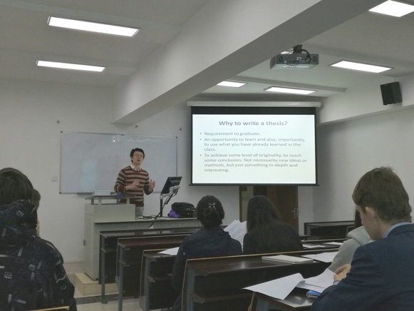 10 月 21 日,金融皇冠体育网址 2017 届英文本科留学生毕业论文指导会顺利举行。金融皇冠体育网址卞洋老师作为主讲人出席了此次论文指导会,就 2017 届毕业生所面临的毕业论文选题、撰写以及数据查找、资料整理等方面做了详细地说明。 首先,卞老师解释了为什么要写一篇论文。他说这不仅是能够毕业的必要条件,更是一次学习与进步的机会:在攥写论文的同时,把在课堂中学到的知识运用到实践中,绝对会发现更加新颖和有趣的知识。 接着,卞老师详细地说明了撰写毕业论文的步骤。从选择一个感兴趣的话题开始、联系指导教师、撰写开题报告、进行实证研究、起草毕业论文直到最后的定稿,每一步都很重要。卞老师尤其强调了引用文献时一定要注明出处来源,不可抄袭他人的作品,更不是简单的复制粘贴,希望学生予以重视。 紧接着,卞老师描述了论文写作的框架与构思。他将论文分为六个部分:引言要展现出所研究的问题和中心思想;文献综述是对攥写论文前所阅读的相关论文的总结;数据查找和研究方法的选择是实证研究最重要的环节;研究结果最好简洁明了,可用图表形式标明;汇总论文主要观点以及全面总结整篇论文。形成论文的每个环节都是必不可少的,希望学生在每个环节都能做好,这样才能展现出一篇高质量的论文。 最后,卞老师告诉同学们:在写毕业论文期间一定会遇到各式各样的问题与挑战,在以后的人生道路上也会遇到很多困难,他希望同学们积极地去面对这些挑战,尽力做好现在自己能够做到的事情。 会后,英文本科留学生班主任汤婕老师对论文的写作、提交、评阅等程序进行了补充说明。对同学们所关心的实习学分的认定与审核、毕业论文的评阅与评定、毕业资格的审核与通过、本科学位的申请与授予等问题进行了详细的解答和说明。 本届英文本科留学生是我院的首届全英文授课的本科留学生,共 20 名学生,来自印度尼西亚、澳大利亚、瑞典、西班牙、泰国等 13 个国家。愿金融皇冠体育网址 2017 届英文本科留学生能够如期完成毕业论文,顺利毕业。