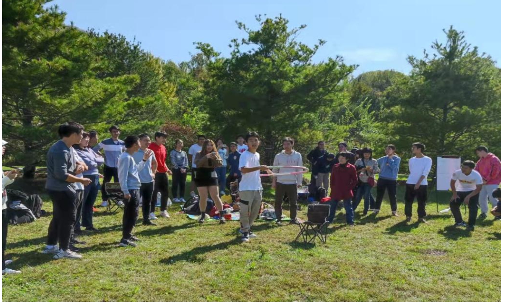 接下来,在几次令人大开眼界的“海龟汤”游戏之后,开始了健步走活动。同学们三五结伴,迎着秋日的和风煦阳,到奥森公园的各个景点游玩观光,都收获了各自的一份享受与愉悦。
