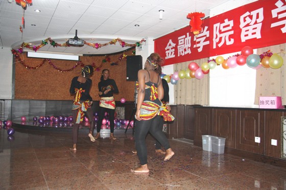 晚会在一支由 2012 级全体同学共同演绎的现代舞曲《 Jing bells 》中拉开了帷幕,他们用热情与活力为大家展现了现代舞的魅力。随后,来自蒙古、俄罗斯、刚果、哈萨克斯坦等国家和地区的留学生为观众们献上了各自国家的舞蹈。多国风情的展示,让舞台美轮美奂。晚会形式多样、精彩纷呈,异域风情与中国传统文化的集合,突显了文化交融的和谐主题。金融皇冠体育网址全体留学生联袂表演了一个又一个精彩的节目。全体俄罗斯留学生用俄语演唱了《新年快乐》, 2013 级全体留学生用中文演唱了《挑花朵朵开》、《对外面的女孩看过来》,日本留学生吉他独奏《 Mental pressure 》,精彩的表演博得了现场观众的阵阵掌声。晚会特设全勤奖颁奖仪式,对上一学年没有迟到旷课的学生予以表彰,全院共 10 名学生获此殊荣。此外,还穿插了游戏和抽奖环节,极大地提高了在场同学的积极性和活跃度,使得整场晚会的气氛不断高涨。在欢快的歌曲《圣诞已降临》的美妙歌声中,各国同学用自己国家的语言祝愿新年快乐,晚会圆满收官。整场晚会历时三个小时,展现了各国留学生的风采,也使留学生在中国提前度过了一个愉悦而令人回味的新年夜。