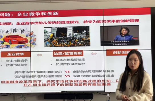 在分享研究延伸内容时,余金馨老师进一步引申至中国市场的现实背景,指出部分企业存在“低质创新”现象,即在地方保护主义的庇护下进行形式化、低效率的创新活动。她以“腾讯南山必胜客”等案例为例,生动说明了地方政府保护如何在一定程度上影响企业创新质量与竞争格局。