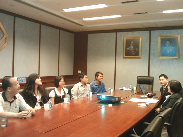 2011 年 7 月 19 日 ,在金融皇冠体育网址邹亚生副院长和国际交流办公室主任汤婕老师的带领下,我院部分留学生代表参观了泰国盘谷银行。行长首先向金融皇冠体育网址师生代表介绍了盘古银行总行及学生即将实习的盘谷银行(中国)有限公司北京分行的发展历程、组织结构、文化理念和市场定位等,并就学生们关心的银行产品、外汇业务等问题进行了详细的解答。我院学生将在盘古银行接受为期4周的实习培训,将在客户服务部、贸易融资部、信贷管理部、合规部进行轮岗实习。