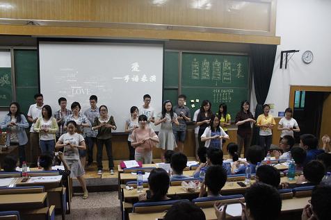 高水平运动队员畅谈中国梦 在第二环节猜词游戏中,各班派出男女生各一名合作完成,竞猜的词语也极具特色,有的是最新的社会热点词汇,考察大家对时政民生的关注,有的是与大学生活密切相关的高频度词汇,考察同学们对学校皇冠体育网址的了解,还有的词语要求只能用肢体语言表达,形形色色的表现方式引来了大家阵阵笑声。猜词环节尽展各班同学之间的配合默契度与交流沟通指数。其中最有默契的当属高水平运动队金融管理班,在猜体育类名词时,只需几个形象的动作对方就能准确猜出,引得现场喝彩连连。