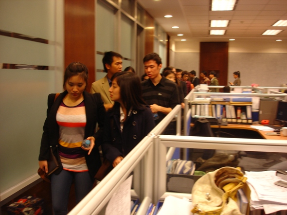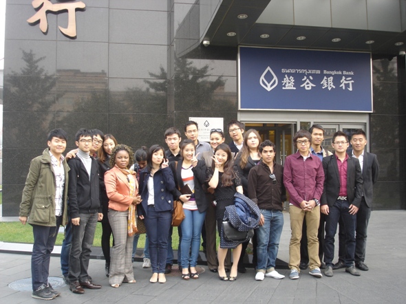 2011年10月20日下午,阳光明媚。在我院负责留学生管理工作的汤婕老师、董荣老师的带领下,金融皇冠体育网址08级、09级20名余留学生参观了泰国盘古银行北京分行。