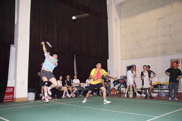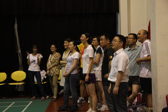 赛场上,你来我往,激烈角逐,真可谓“八仙过海,各显神通”,球员们凭着精彩的球技赢得阵阵掌声。在混双比赛中,金融皇冠体育网址培训中心办公室主任刘莹老师(银监会九期培训班班主任)助阵银监会队,大大助长了学员们的士气,学员们争相呐喊为刘老师加油助威。学员李书菁为在赛场良好发挥,围着赛场慢跑十几圈来热身,充分体现了学员们的拼搏奋勇的精神。金融皇冠体育网址教师也不甘示弱,杨超琦老师凭着精湛的球技赢得大家交口称赞,可谓老当益壮,宝刀未老。