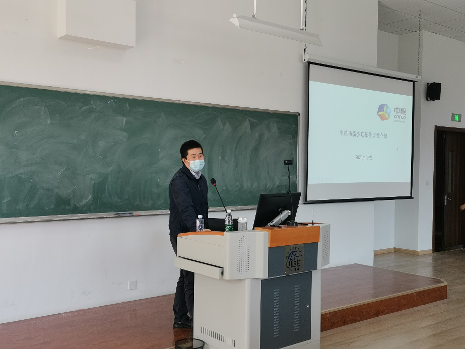 本次集中授课的最后一讲“大宗农产品经营企业价格风险管理”由黄福海先生主讲。黄总从中粮集团业务范围入手,结合政策环境、市场环境及主要风险类型,重点讲解了农产品经营过程中的风险管理问题。从问题出发,逐步引出套期保值在控制风险过程中的具体方式,更进一步地深入到套利交易的类型和原理。接着,黄总讲解了中粮期货的农产品研发架构,为同学们提供了研究认知与思路方法上的经验。最后黄总介绍了中粮农产品商情信息体系建设情况,使同学们对业界实务的发展现状有了更加直观的了解。