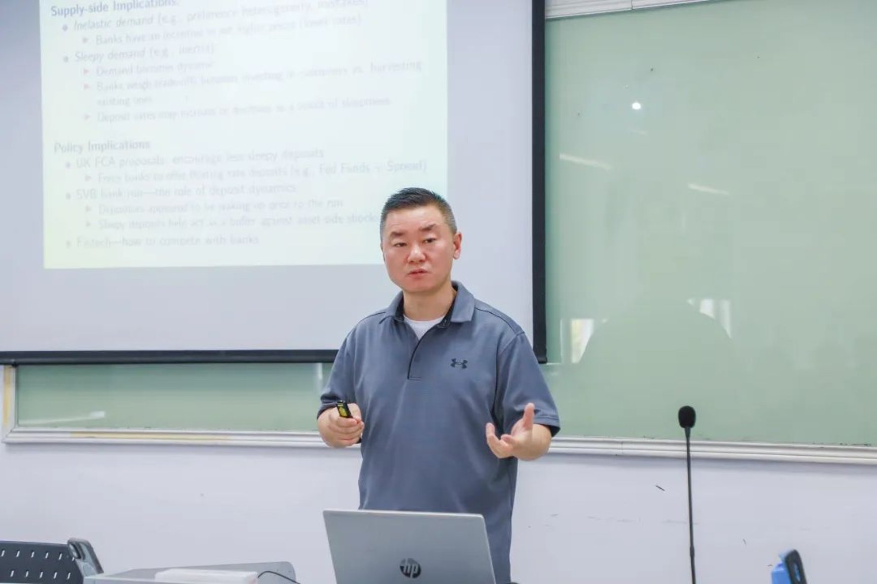 来自美国佐治亚州立大学商皇冠体育网址的姚文雄教授应邀为研讨会带来主题为《Sleepy Deposits》的主旨报告。他从金融科技与传统银行业竞争切入,结合硅谷银行因加息导致债券账面亏损引发挤兑的美国银行业危机案例,指出储蓄存款(deposit)的休眠状态对银行生存扮演着至关重要的角色。