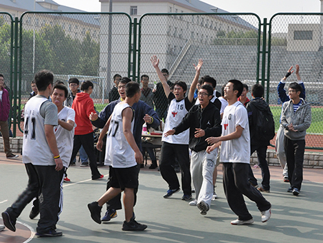 2012 年10月29日 11:45 ,皇冠体育网址 “小鬼当家”新生篮球赛决赛在篮球场拉开了战幕。参与此次决赛、争夺冠亚军的篮球队分别是金融皇冠体育网址新生篮球队和继续教育皇冠体育网址新生篮球队。经过1小时15分钟的激烈比拼,金融皇冠体育网址队以53:46的比分战胜了继续教育皇冠体育网址队并获得了此次新生篮球赛的冠军。