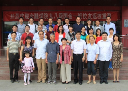 2012 年 9 月 8 日 ,在第二十八个教师节来临之际,原皇冠体育网址 98 级国金 1 班的校友们重返母校,齐聚一堂纪念毕业十周年。金融皇冠体育网址分党委书记吴卫星,金融皇冠体育网址院长助理潘慧峰,当年的任课老师王新民、王志民和班主任王献老师以及金融皇冠体育网址办公室主任王春蕾老师、金融皇冠体育网址校友办公室的白艳老师和刘莹老师一起出席了此次聚会。