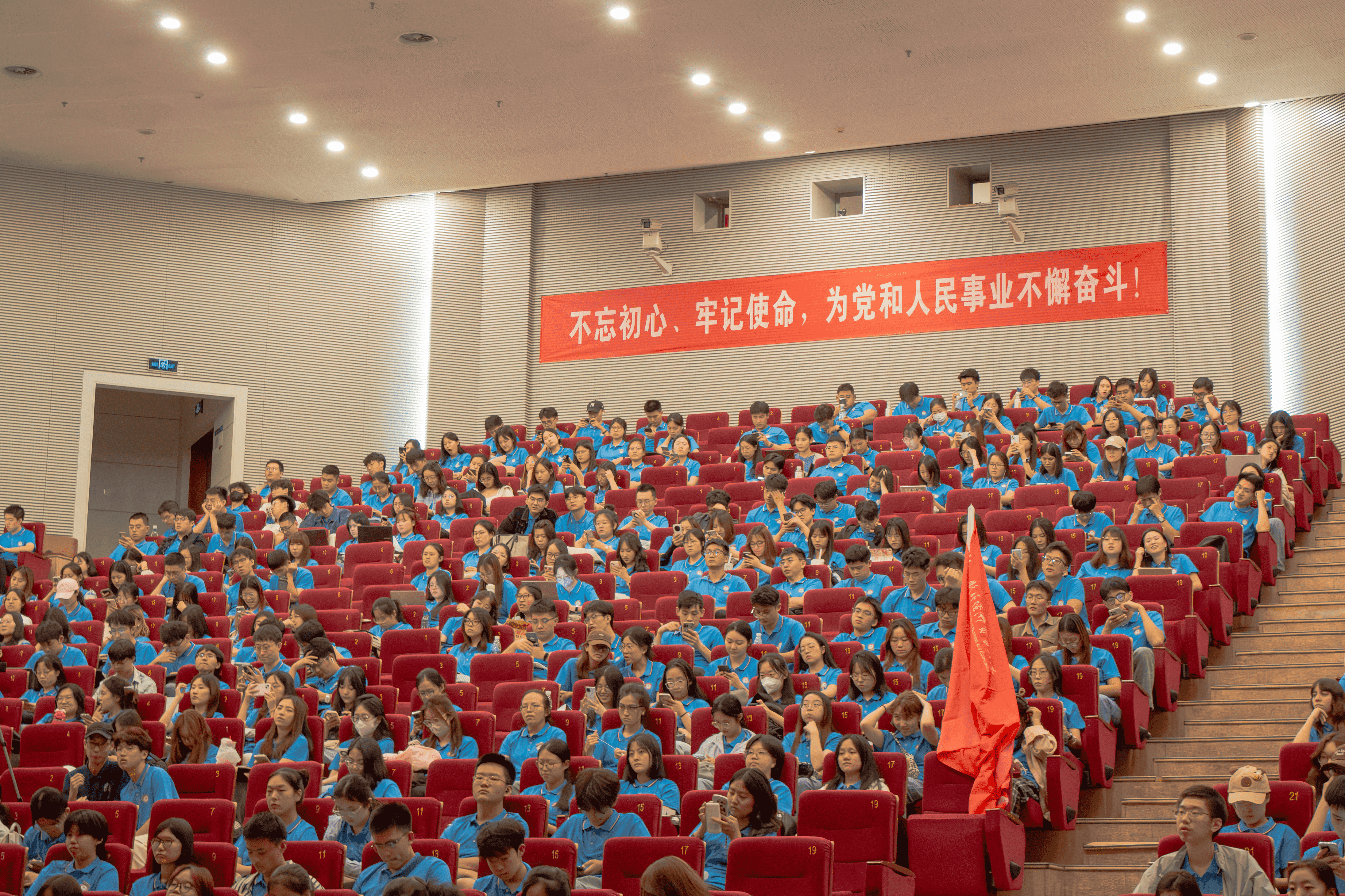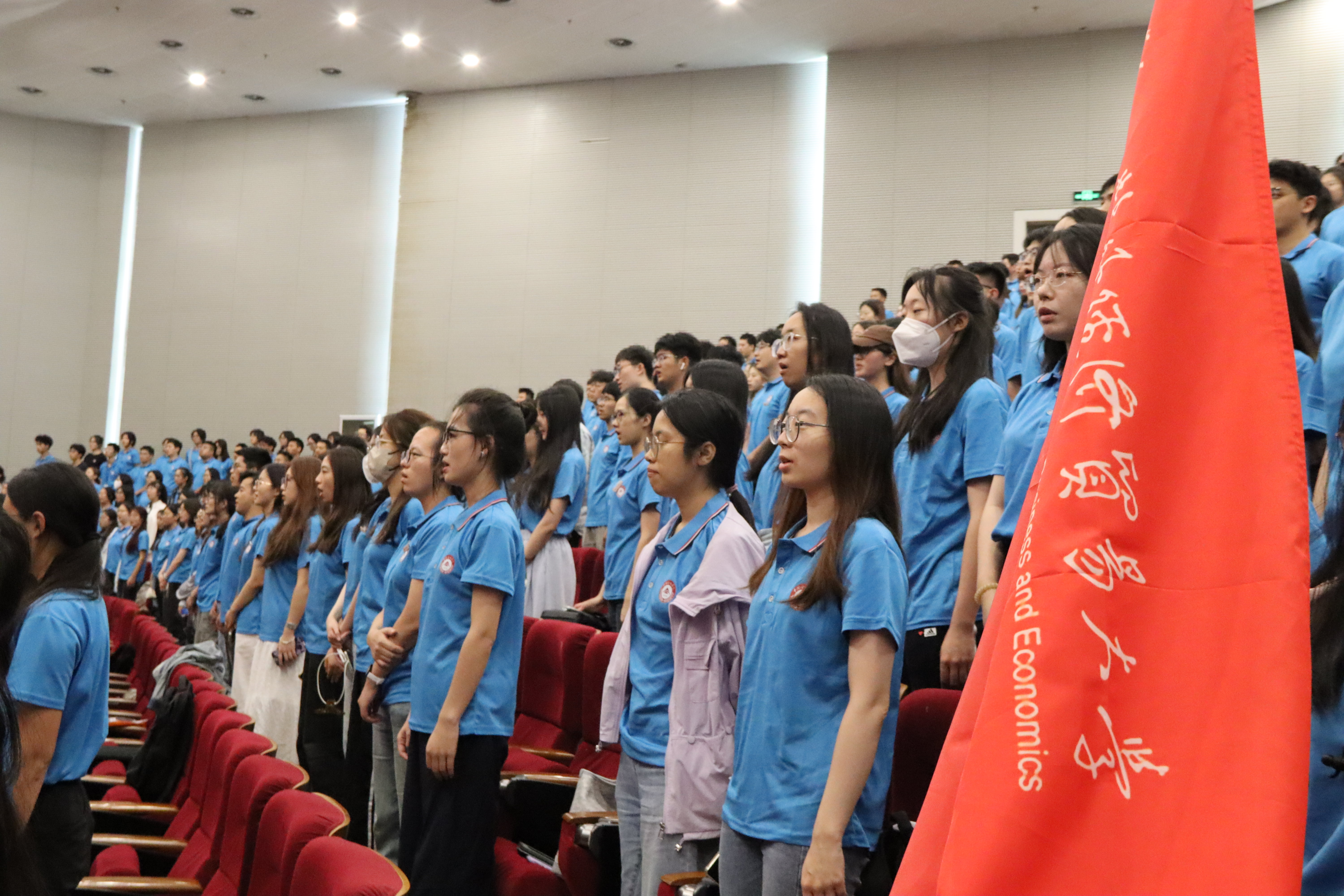 最后,全体参会师生合影留念,开学典礼在“金融强国,贸大有我”的欢呼和掌声中圆满结束。