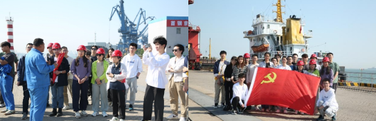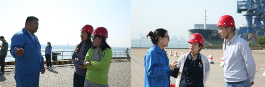 最后,师生来到成品运输码头,运输部负责人详细介绍了码头的功能和公司的运输优势。负责人特别提到,首钢京唐公司目前已实现水运、陆运、铁运三路无缝衔接,同时承担着首钢集团下属迁钢公司、顺义冷轧的海运发运任务。这一物流优势在2020年新冠肺炎疫情期间和2023年7月暴雨期间为保障企业生产顺稳起到了重要作用。