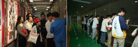当日下午,师生团队在京唐公司各部门负责人的引领下,深入产线,分别参观了炼铁部高炉主控室和三高炉、热轧部2250产线、冷轧部高强镀锌产线、京唐公司成品码头。通过参观高炉主控室,师生深入感受了钢铁企业的安全监控体系和炉火初心;通过参观热轧部和冷轧部产线,师生真实感受到了“火”的热情和制造强国、人工智能赋能产业升级的具象化。