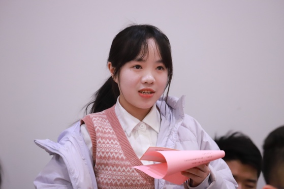 为提升学习参与度和实效性,本次活动创新设置“学习书签”环节,引导同学们在聆听报告过程中记录关键词句和思考感悟。杨和宁、林锶颖等同学结合书签内容,围绕“统筹发展与安全”“做好科技金融、绿色金融、普惠金融、养老金融、数字金融五篇大文章”等议题,畅谈了对金融工作政治性、人民性与专业性的理解,表达了将专业所学融入国家发展的决心。