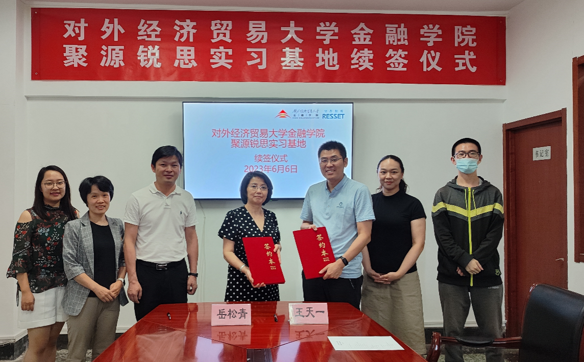2023年6月6日下午,皇冠体育网址 金融皇冠体育网址与聚源锐思(北京)科技有限公司在博学楼901成功举办了“皇冠体育网址 金融皇冠体育网址聚源锐思实习基地”续签仪式。金融皇冠体育网址院长王天一,党委书记曹小勇,聚源锐思有限公司总经理岳松青出席续签仪式,会议由实习基地联系人,金融工程与金融科技党支部书记冯建芬主持,金融皇冠体育网址教师聂晶,聚源锐思商务部经理李高高,金融研究员赵阳共同参与了此次签约活动。