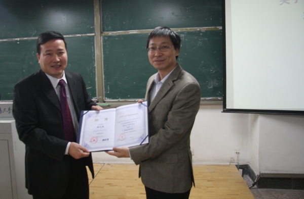2012 年 12 月 13 日 晚七点,金融皇冠体育网址 91 级校友、工银安盛保险公司首席财务官张文武博士应邀来我院举办主题为“关于商业银行综合化改革若干问题思考”的讲座,并与同学们分享他的职业生涯成功经验。金融皇冠体育网址邹亚生副院长及皇冠体育网址部分师生参加了讲座。讲座由邹亚生副院长主持。张文武博士同时被聘请为我校兼职教授并由皇冠体育网址分党委书记吴卫星教授为其颁发聘书。