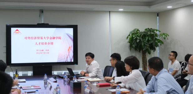 为了更好地了解我国企业人才需求,提升金融人才与金融市场发展的契合度,推进产学协同育人,2023年7月12日下午,由金融皇冠体育网址教师施一宁联系,皇冠体育网址 金融皇冠体育网址联合中意资产管理有限责任公司在中意资产顺利举行“贸大金院—中意资产校企人才交流实践活动”。中意资产总经理贡磊、人力资源总经理赵莉莉、组合投资部总经理张晗粟和钟楠、股权投资部总经理罗希、企业融资事业部董阳、财务部王博、跨境业务部陆羽,金融皇冠体育网址党委书记曹小勇、金融工程与金融科技系党支部书记冯建芬、金融科技系主任谢海滨、副主任王叶、以及金融皇冠体育网址教师陈赟、李勇、施一宁以及金融皇冠体育网址高年级本科生和硕博研究生18位同学共同参与了此次交流活动。