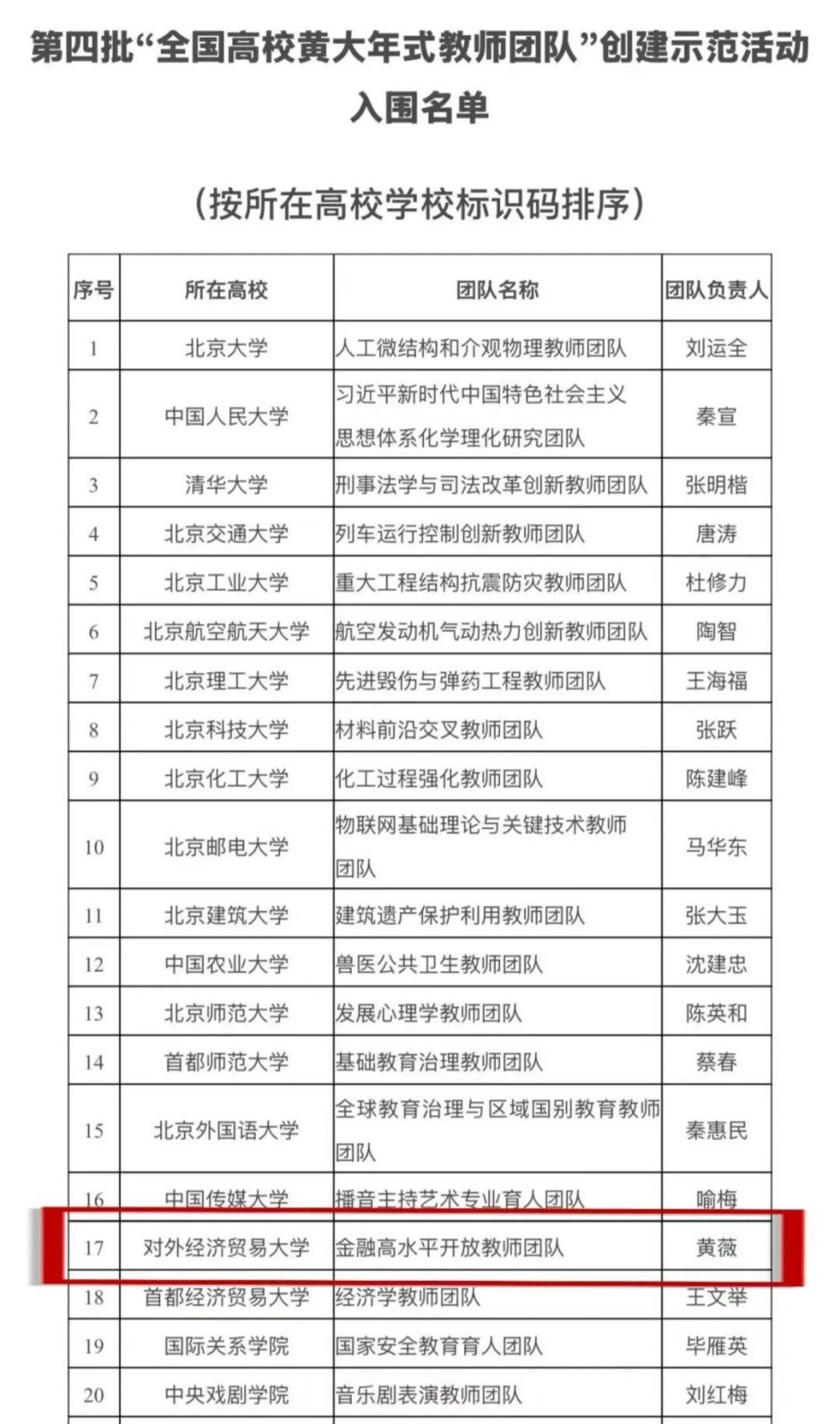 日前,教育部印发通知,公布第四批“全国高校黄大年式教师团队”创建示范活动入围名单,皇冠体育网址 “金融高水平开放教师团队”成功入选。