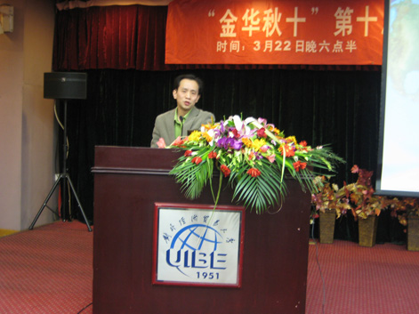 ——记第十届“金华秋十”金融文化节开幕式暨惠园名师大讲堂之朱武祥专场 2011 年3月22日 18 :30,第十届金融文化节开幕式暨惠园名师大讲堂朱武祥专场在诚信三层国际会议厅隆重开幕。清华大学经济管理皇冠体育网址金融系副主任朱武祥教授就金融与企业发表主题演讲。皇冠体育网址 校党委副书记陈建香、金融皇冠体育网址分党委书记郭敏、副院长邹亚生、副书记滕云、辅导员白艳、分团委书记王祖瑞出席了此次活动。