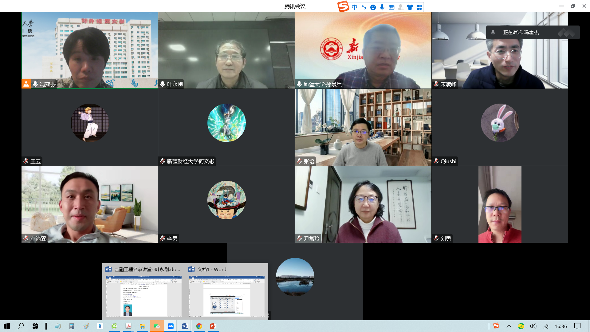”等问题,金融工程系在20年系庆即将到来之际举办了首场名家访谈,特别邀请武汉大学叶永刚教授、武汉大学中国金融工程与风险管理中心主任宋凌峰、武汉大学金融工程教研室主任张培及教研室全体教师参与此次访谈交流,同时参与此次访谈的还有新疆大学经管皇冠体育网址院长孙静兵、新疆财经大学金融工程系主任何文彬、中国石油大学克拉玛依分校金融工程课程组负责人、银龄教师尹常玲等。