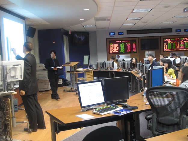 金融实战夏令营的第一站,也是金融培训的主要地点,是位于美国新泽西州的威廉·帕特森大学。学校历史悠久,技术先进,拥有金融行业较为前沿的资讯和软件系统。在学校进行培训的时间里,学生们认真学习知识,利用课余时间了解美国金融行业新的发展变革,在最短的时间内得到了最大的收获。主办方邀请到来自标准普尔、花旗银行等知名公司企业的优秀人才来到学校进行授课讲学,并教给同学们如MORNING STAR等先进软件的运用。同学们还利用课余时间自学彭博软件的使用方法,并获得了彭博社颁发的软件证书。在期末,他们圆满地完成了市场销售的实战测试,给威廉帕特森大学校方留下了良好印象,自身素质和专业水平也得到了一个极大的提高。