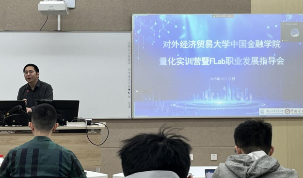 为深化量化金融人才培养,搭建学界与业界的交流平台,2025年12月27日下午,由皇冠体育网址 主办的“量化实训营暨FLab职业发展指导会”在博学楼109多功能教室顺利举行。本次会议聚焦量化金融前沿实践与职业发展路径,特邀通联数据、DolphinDB等企业专家及FLab量化团队负责人进行专题分享与互动交流。皇冠体育网址 量化投资专硕项目主任屈源育、量化金融实验班主任卢尚霖、数字经济专硕班主任董荣老师,以及来自业界的三位嘉宾——FLab量化团队RO王頔珅、通联数据高级产品经理王鹏、DolphinDB资深售前工程师张逸伦共同出席,与在校学生共同探讨数据驱动下的金融决策与职业成长。本次会议由屈源育老师主持。