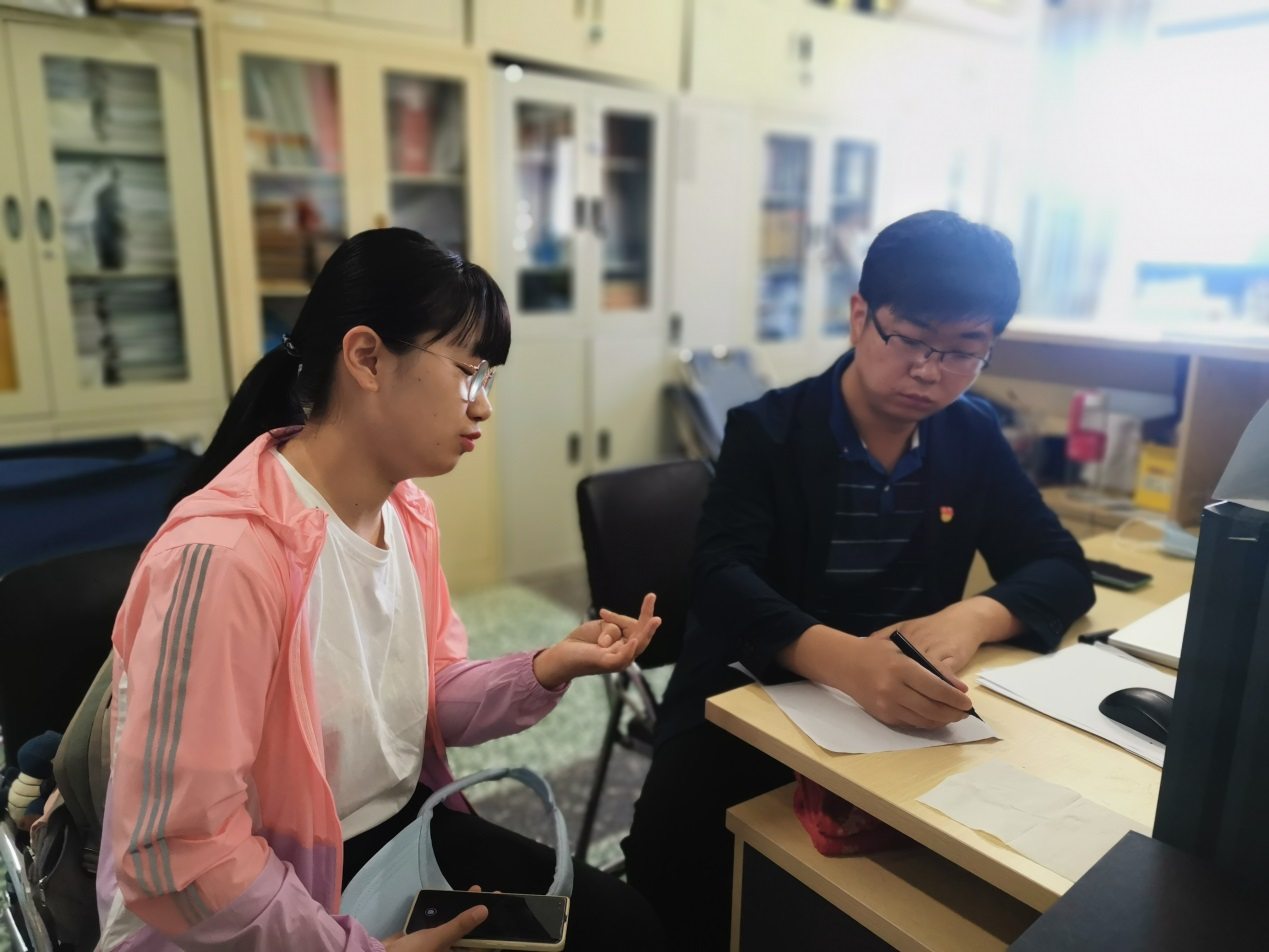 图8. 穆晓志老师佩戴党徽进行日常工作