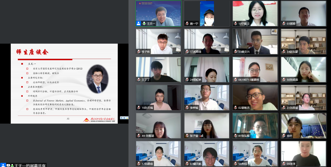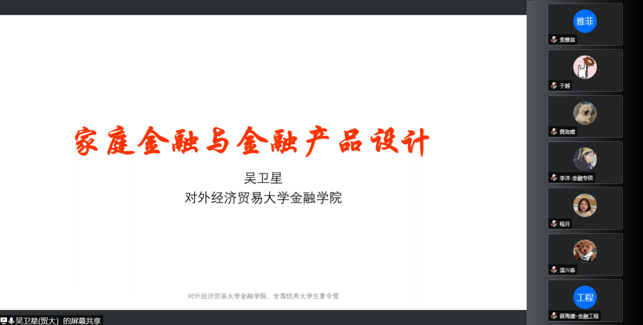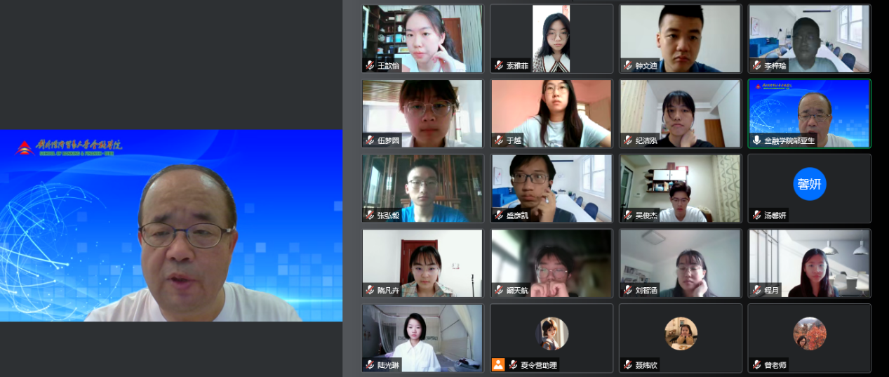 在第一天最后一项学生座谈会活动中,金融皇冠体育网址优秀学生代表肖静、李维升、陈晓仪和樊成韵四位同学先后分享了在贸大金融皇冠体育网址求学的学习生活经历,虽然是线上座谈,但夏令营的同学们热情很高,积极参与讨论和交流。