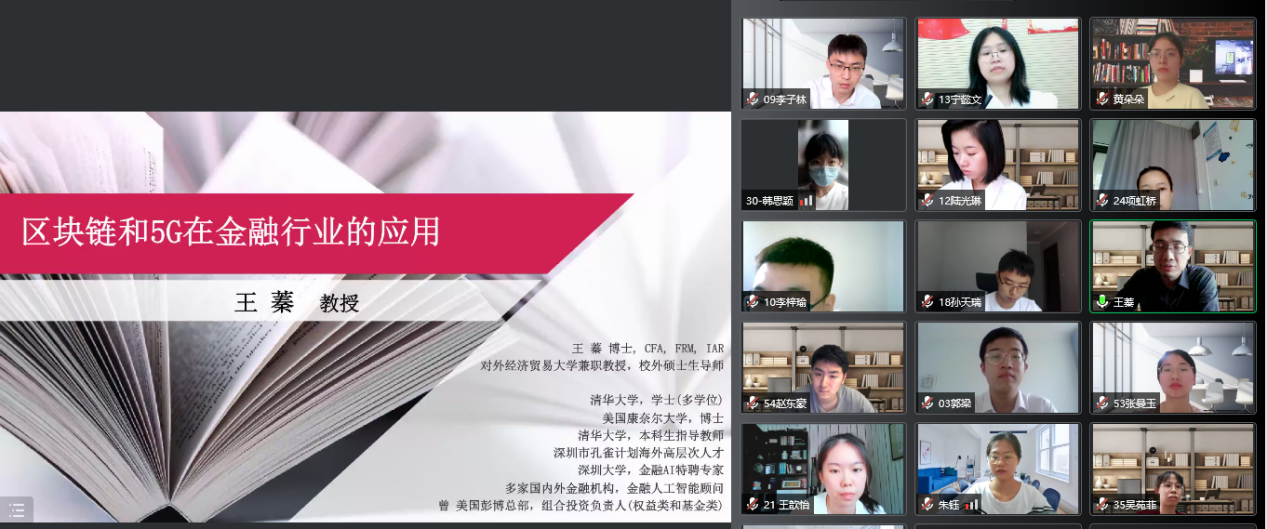 在业界报告会上,金融皇冠体育网址客座教授、多家国内外金融机构金融人工智能顾问王蓁先生向大家展示了区块链和5G在金融行业中的应用,他以科技生态里行业知识的重要性作为切入点展开了分享,而后展示了区块链的基础概念、底层逻辑和在供应链金融平台的应用,通过鲜活的案例带大家深入感受了技术创新蕴藏的能量和机遇。王蓁教授强调,报告会的目的不仅仅是科普,而是带大家了解业内最先进的技术和理念是如何影响金融实务的,进而激发同学们的思考和研究热情。