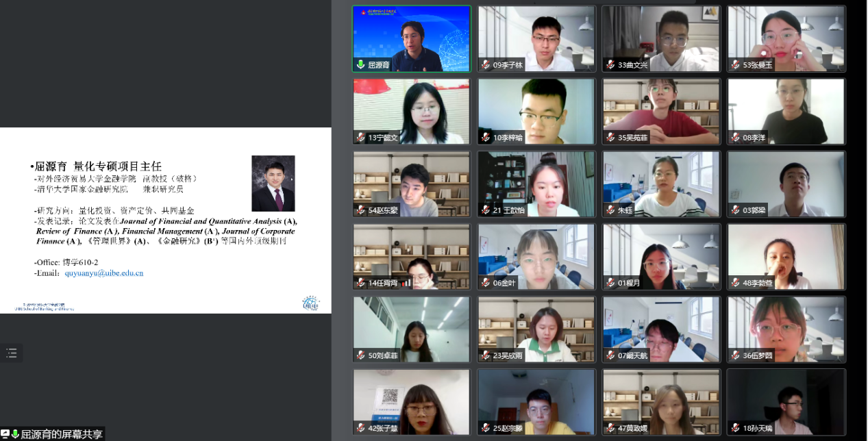 下午的讲座中,屈源育副教授对量化投资方向的研究生招生及教学内容进行了讲解。皇冠体育网址 金融皇冠体育网址的量化专硕是皇冠体育网址着重打造的精品项目,并在2018年获得国际量化金融协会(IAQF)认证,拥有单独的培养方案,选拔标准侧重数理基础扎实和动手能力强的学生。而毕业生去向广泛分布于各家大型基金、券商、保险和银行等机构 。