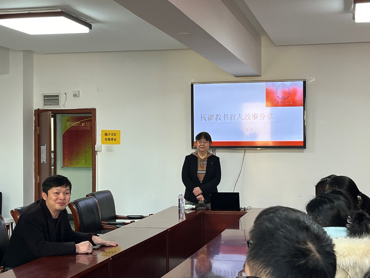2023年12月21日,金融皇冠体育网址党委在博学楼925会议室举办“倾情边疆,无怨无悔——金融皇冠体育网址高洁教授谈援疆岁月”教师沙龙,金融皇冠体育网址青年教师及部分学生参加活动,金融皇冠体育网址曹小勇书记主持沙龙。